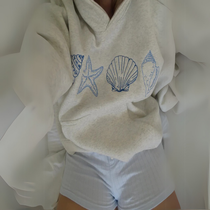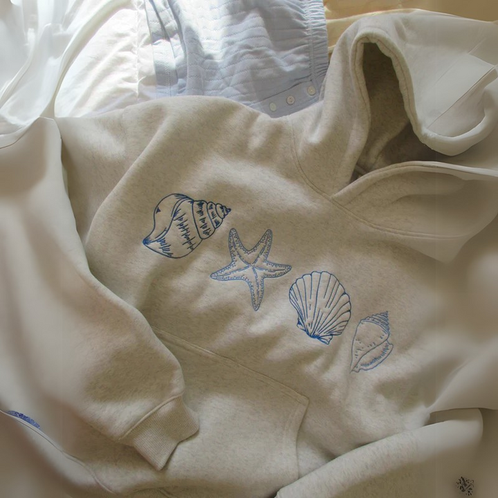 Cozy up in coastal style. Inspired by the ocean, this hoodie blends comfort and effortless fashion with a seashell and starfish design that brings beachy vibes wherever you go. Lightweight, soft, and made to last—your go-to for cool nights, lazy weekends, or layering all season long.