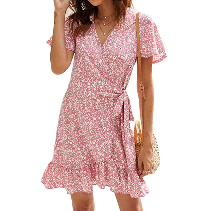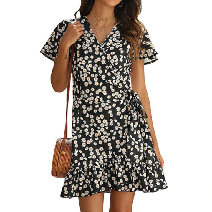A lively floral design adds softness and style. The flounce hem enhances the dress’s flow, while the waist belt brings definition to your silhouette. Lightweight material ensures all-day comfort indoors or outdoors.