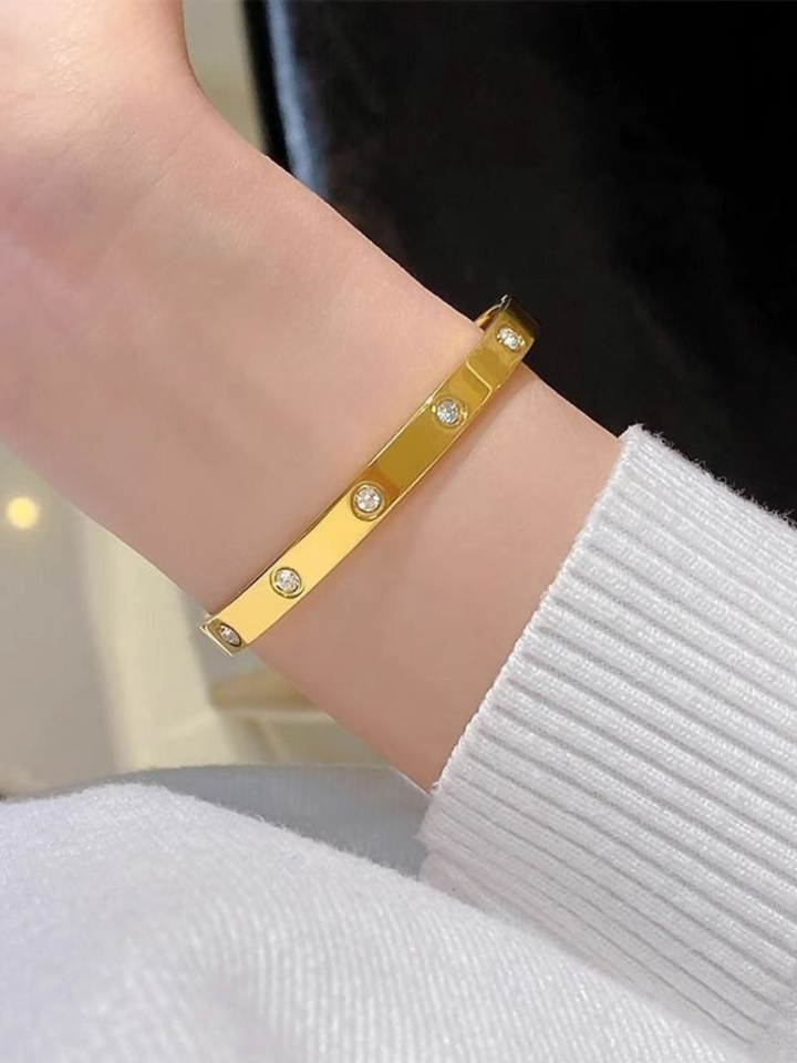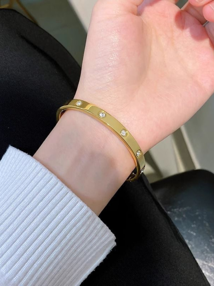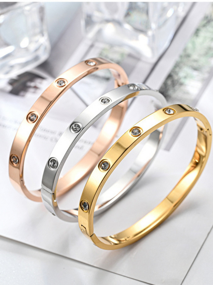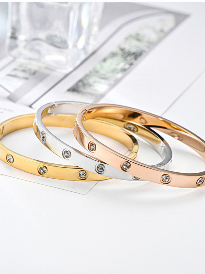 Shine with confidence every day with our Luxury Stainless Steel Crystal Bangle Bracelet for Women — crafted to deliver elegance, durability, and timeless style. Designed with premium stainless steel and crystal accents, this bracelet offers the look of luxury without the high price tag. Perfect for work, parties, or casual wear, it’s a versatile accessory that never fades, tarnishes, or loses its shine.