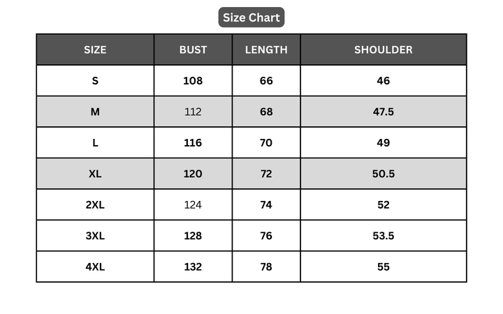 S, M, L, XL, 2XL, 3XL, 4XL |