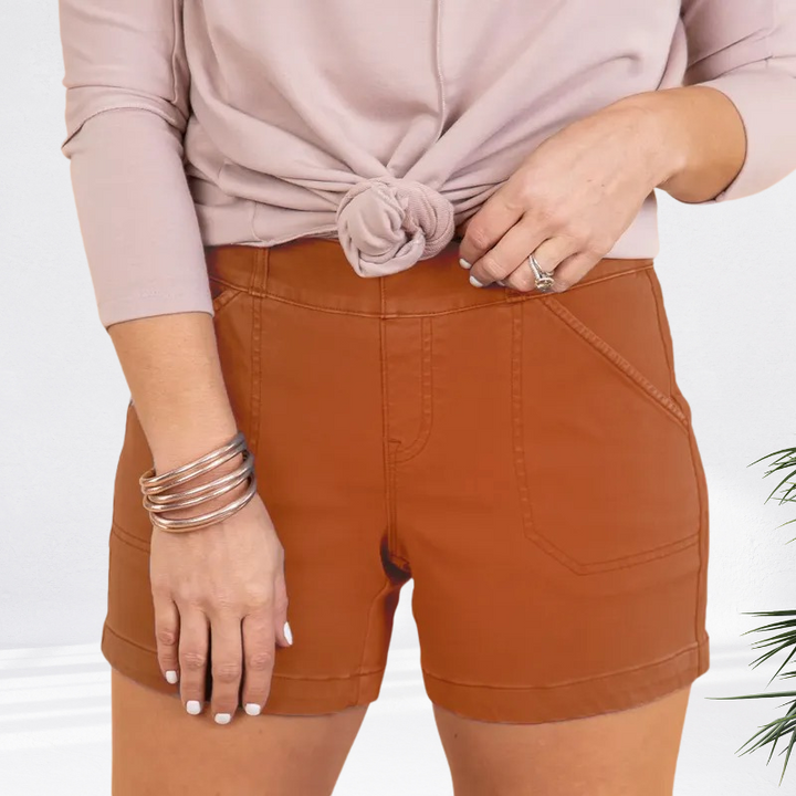 Own your look with our Women’s Slim Fit Twill Shorts, designed to flatter your shape while keeping you comfortable all day. With a pull-on fit, no zippers, and a slimming mid-rise waist, these shorts smooth your silhouette while giving you effortless stretch and flexibility. Perfect for casual outings, weekend getaways, or pairing with your favorite tops for chic everyday style.